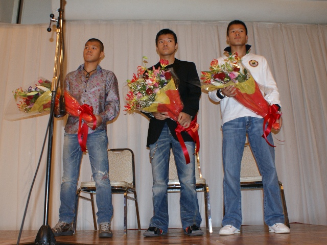 この日、大毅が鳥取に合流し、三人揃っての後援会発足パーティーへの出席となった。